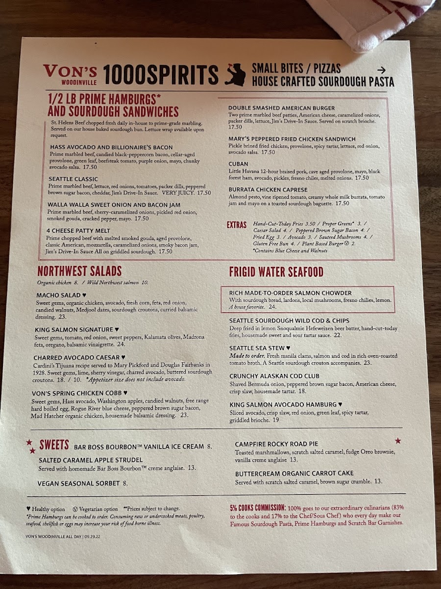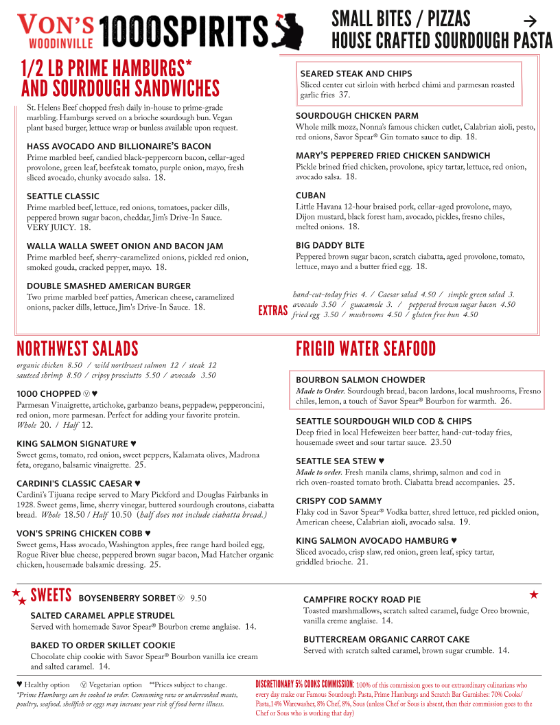 Diners rave about the ambiance, exceptional service, and innovative cocktails, such as the whimsically named Smoked Oak & Cherry Manhattan. With a fantastic lunch discount for Washington residents, Von's 1000 Spirits is undoubtedly a culinary experience worth revisiting.